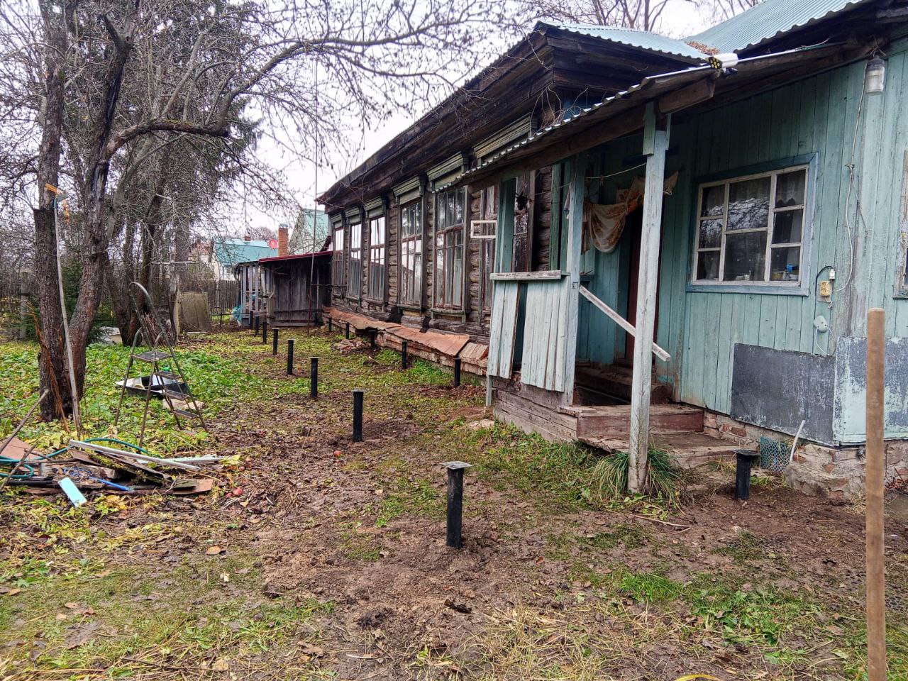 —Винтовые сваи для пристройки к бревенчатому дому