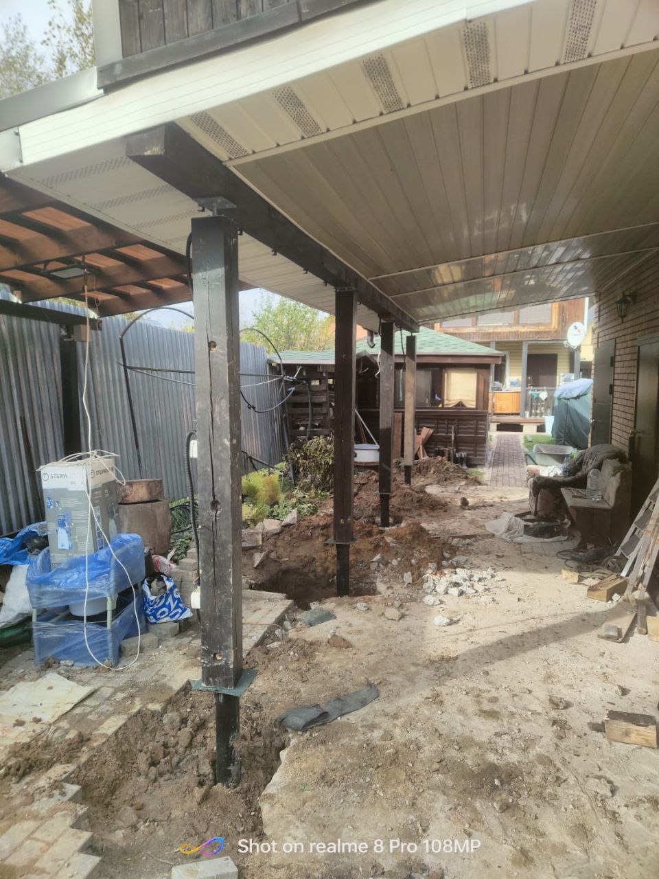 Пример работы компании "Сваекрутов": замена бетонных опор под автомобильным навесом в Подольске